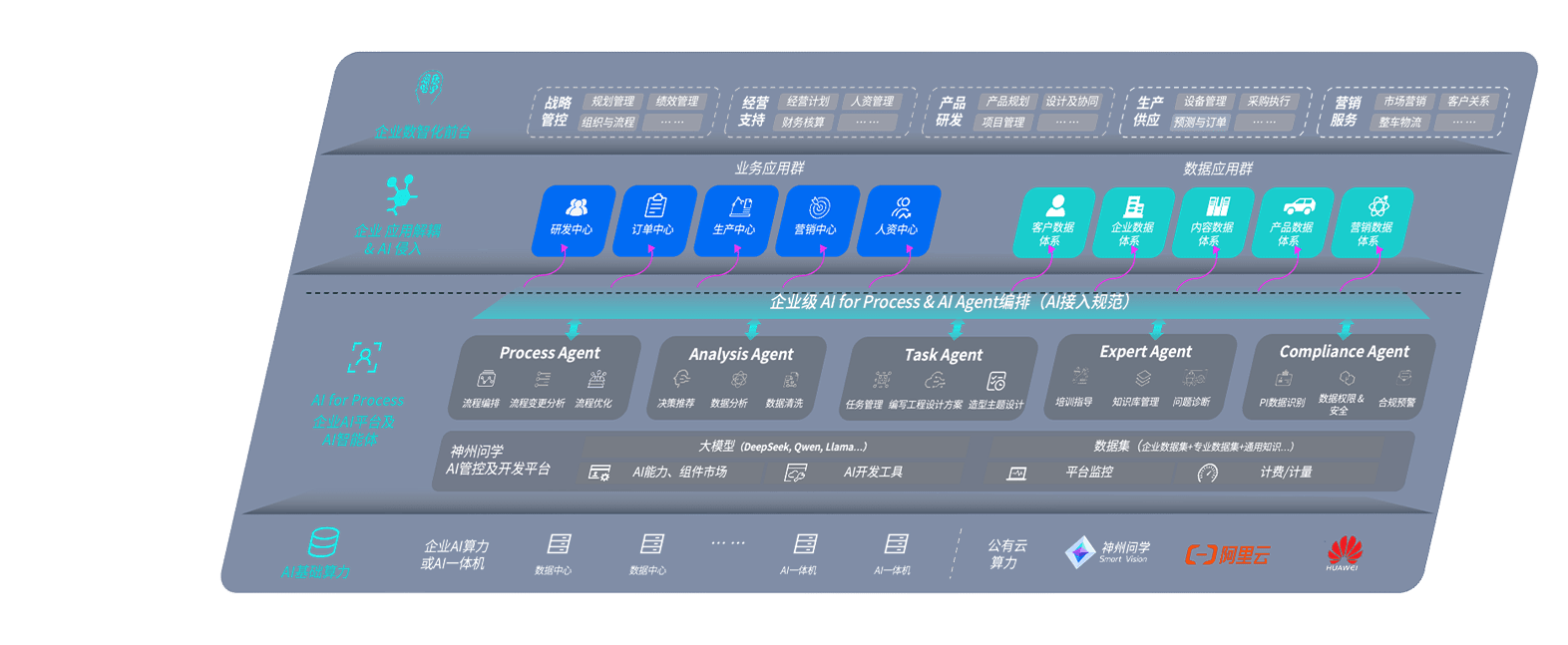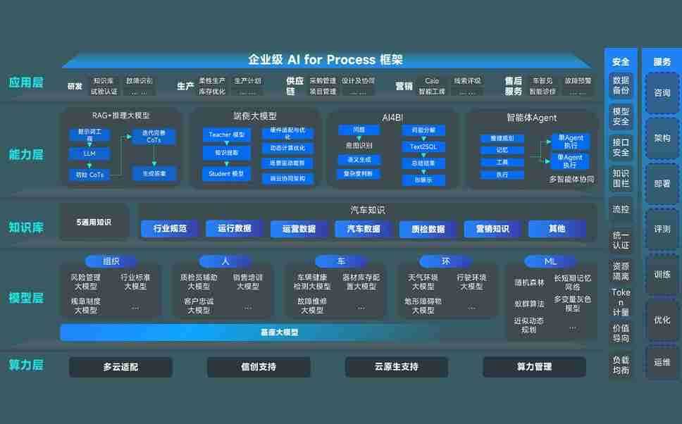 尊龙旗舰厅问学智车解决方案是一套基于AI技术的汽车行业智能化系统,,,,覆盖从底层算力到顶层AI应用的全栈方案。。。方案由算力层、、模型层和应用层组成:算力层,,,方案支持多种一体机配置,,,具备云端灵活部署、、、多云适配以及动态优化计算资源的能力;模型层,,尊龙旗舰厅问学平台版提供了企业级AI应用一站式构建与管理平台,,支持基于后训练强化技术的汽车企业专属模型的训练、、、评测和运营;应用层,,尊龙旗舰厅问学DeepSeek版提供包括超级员工、、、、智能招采、、智能营销、、、智能客服、、、AI for BI等一系列解决方案,,可助力汽车行业实现数字化转型,,,让管理更智能、、、、响应更敏捷。。